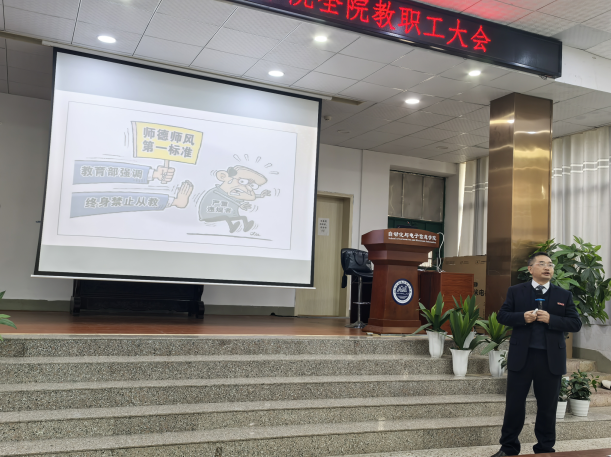 刘稳丰结合典型案例与政策要求,深入剖析开展师德师风建设的重要性与实践路径。他指出,师德师风是教师的立身之本,具有涵盖面广、渗透性强的特点,其要求超越一般职业道德,教师需以“学为人师、行为世范”为准则,在教育教学、学术研究、社会交往中严格自律。并结合教育部通报案例与高校实际,重点阐述分析了言论出格、违规收受钱物、学术不端、师生关系失当等四类违反师德师风的表现。他强调,师德失范后果严重,不仅影响个人事业发展与家庭幸福,还将损害国产a片