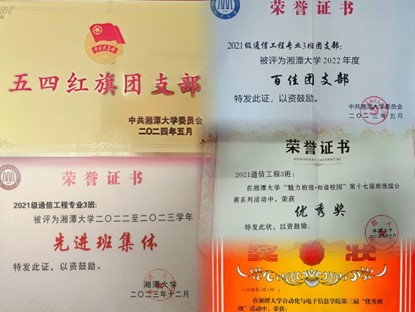 “五四红旗团支部”、“先进班集体”、“百佳团支部”、“优秀班级”……三年来,2021级通信工程3班荣获多项集体荣誉。